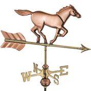 This sleek horse loves the feel of the wind in his mane as he adorns your garden, deck or yard. Weathervanes are easy-to-assemble and install. Includes and assembly rod, solid brass 11″L directionals, copper globes and 53″ garden pole.