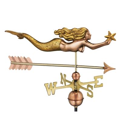 Some say it’s better down where it’s wetter, but this mermaid couldn’t be happier to rise from the seafoam and onto the rooftop of your house, barn, garage or cupola, invoking a sense of wonder year-round! Our Good Directions’ artisans use Old World techniques to handcraft this fully functional, standard-size weathervane that’s unsurpassed in style, quality and durability. A great gift for folk art enthusiasts!